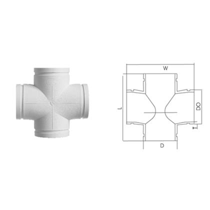 平面四通丨HDPE溝槽式連接靜音管